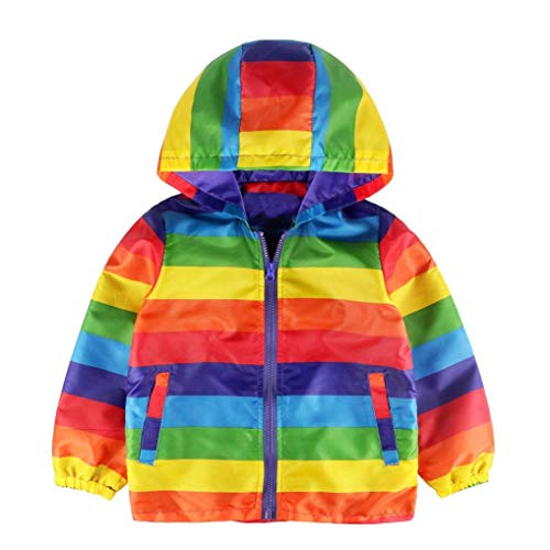 子供用 ロングスリーブ レインボーストライプ プリント フード付き ジップジャケット トップ 赤ちゃん服 ベビー服 女の子 幼児 子供服 長袖 5サイズ キッズ服 満月/出産祝い/プレゼント