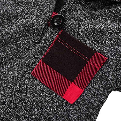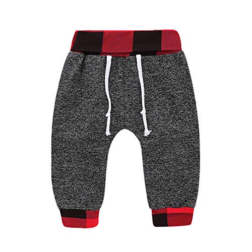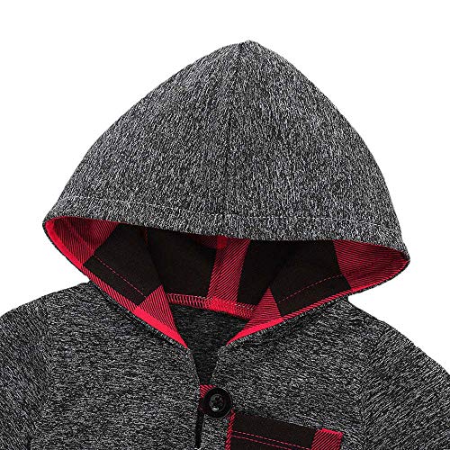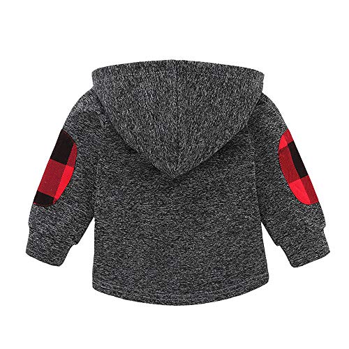 ベビー プルオーバー 長袖 ロングスリーブフード付きチェック柄トップ/2点セット(プルオーバー+ズボン)70CM-80CM-90CM-100CM(6ヶ月-3歳) 洋子ちゃん (【70/6ヶ月】2点, グレー)