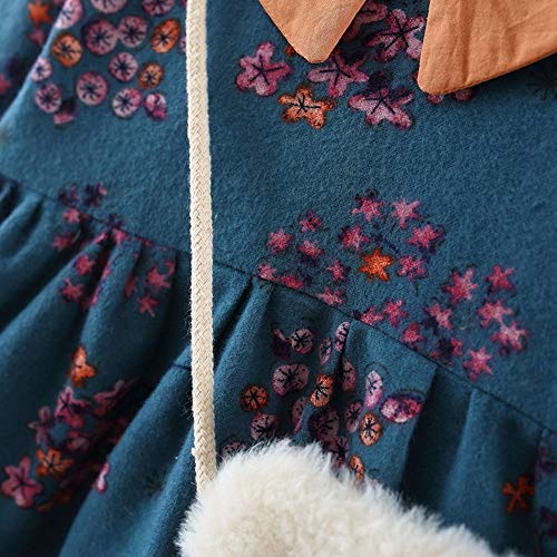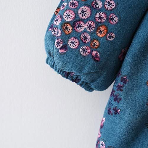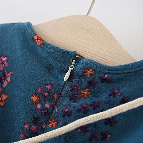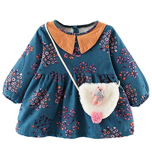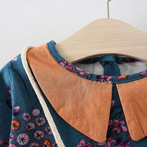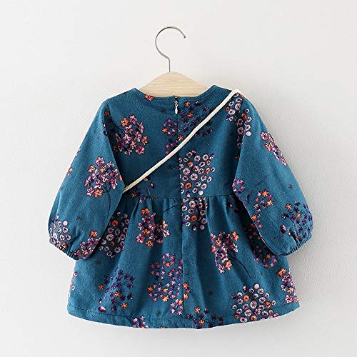 葉 果物 花柄 プリント フリル 袖 プリンセススカートドレス+ヘアバンドセット かわいい ワンピース 女の子 子供服 女の子 赤ちゃん服 幼児 子供服 女の子 長袖 4サイズ キッズ服 70CM-80CM- 90CM-100CM(0ヶ月-2歳)洋子ちゃん (青(2点セット), 【90/18ヶ月】)