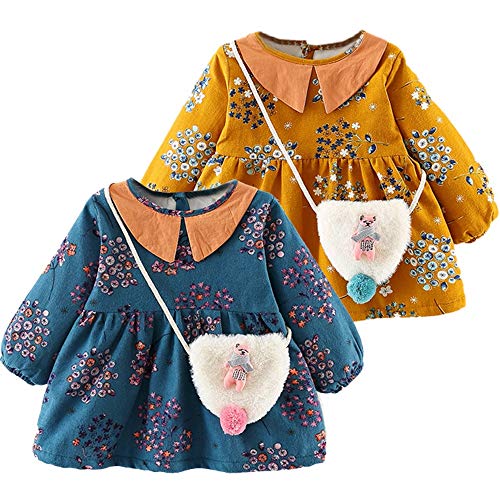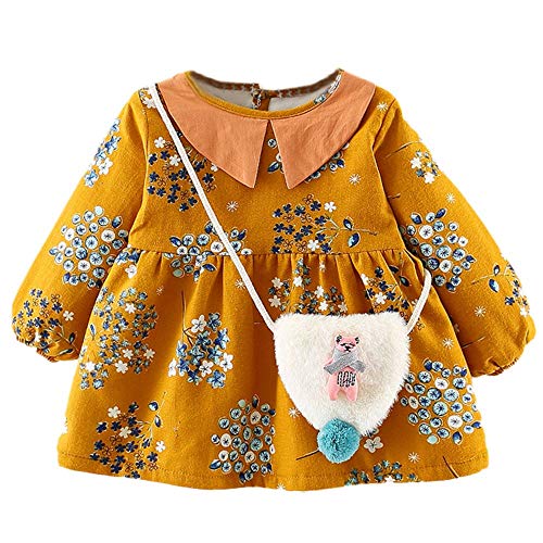 葉 果物 花柄 プリント フリル 袖 プリンセススカートドレス+ヘアバンドセット かわいい ワンピース 女の子 子供服 女の子 赤ちゃん服 幼児 子供服 女の子 長袖 4サイズ キッズ服 70CM-80CM- 90CM-100CM(0ヶ月-2歳)洋子ちゃん (黄(2点セット), 【70/6ヶ月】)