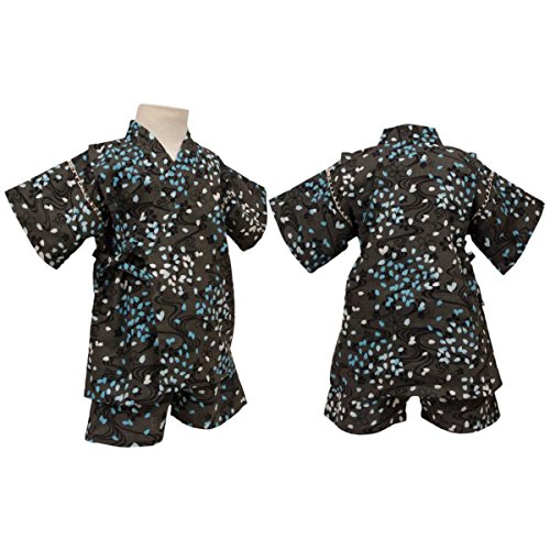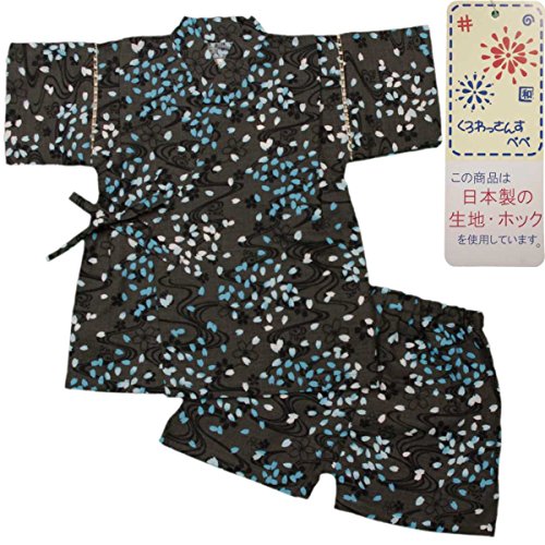 カラー : ブラック / ボーイズベビー桜柄甚平上下セット(日本製生地使用、中国縫製) / ・ 日本製生地使用 / ・ 桜柄の上下セパレートタイプの甚平 / ・ 肩口は千鳥掛けで涼しい / ・ 上着は内掛け、外掛け紐でカンタン着用 / ・ パンツはウェストゴム入り / ・ お祭りや花火大会だけではなく、普段着やパジャマとしても大活躍! / 綿 100%(日本製生地)