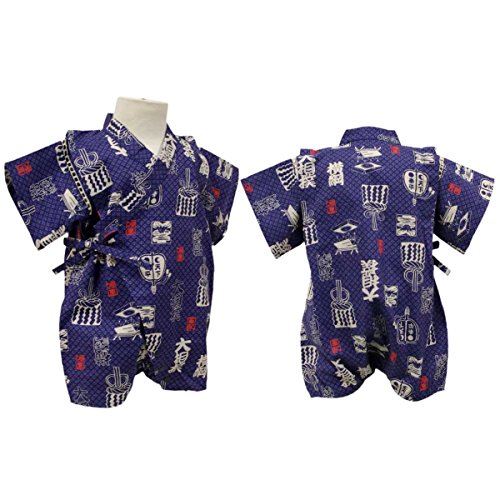 カラー : ネイビー / ボーイズベビーすもう柄甚平ロンパースタイプ(日本製生地使用、中国縫製) / ・ 赤ちゃんのお肌に優しい綿100%の日本製生地使用 / ・ 相撲柄・和柄のロンパースタイプの甚平 / ・ 肩口は千鳥掛けで涼しい / ・ 上着は内掛け、外掛け紐でカンタン着用 / ・ 股下はスナップボタン留め・着脱やオムツ替えが簡単! / ・ お祭りや花火大会だけではなく、普段着やパジャマとしても大活躍! / 綿 100%(日本製生地)