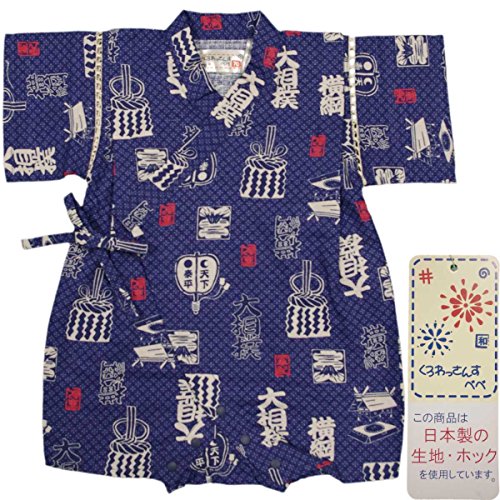 ボーイズ|ベビー|浴衣|甚平[くろわっさんす べべ]ベビー甚平|ロンパース甚平|相撲柄|和柄((日本製生地)綿100%|新生児|男の子|男児用 70cm ネイビー