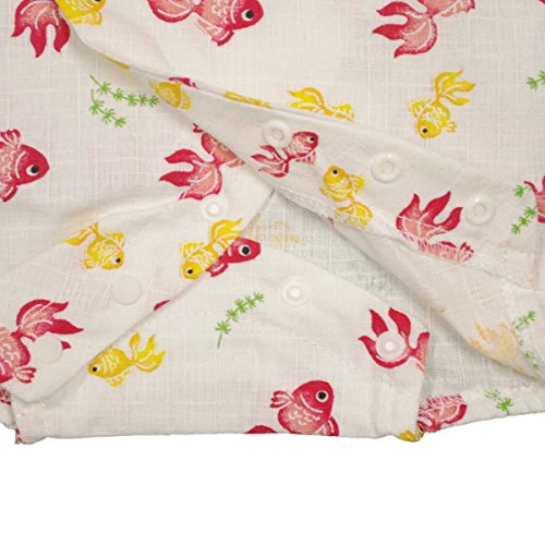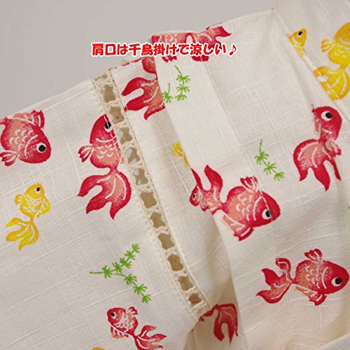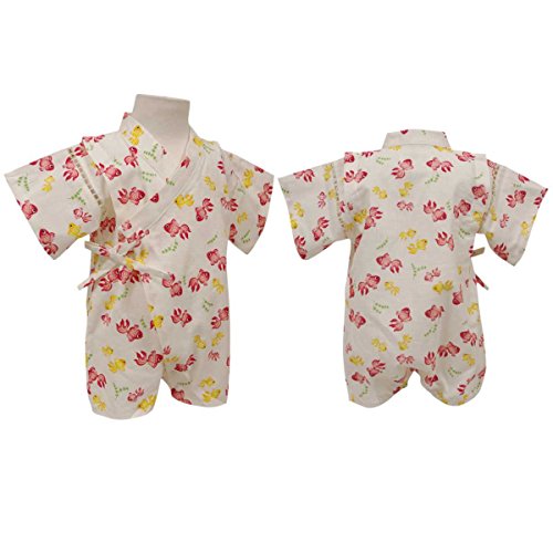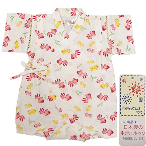 カラー : ホワイト / ガールズベビー・金魚柄・甚平ロンパースタイプ(日本製生地使用、中国縫製) / ・ 赤ちゃんのお肌に優しい綿100%の日本製生地使用 / ・ きんぎょ柄のロンパースタイプの甚平 / ・ 肩口は千鳥掛けで涼しい / ・ 上着は内掛け、外掛け紐でカンタン着用 / ・ 股下はスナップボタン留め・着脱やオムツ替えが簡単! / ・ お祭りや花火大会だけではなく、普段着やパジャマとしても大活躍! / 綿 100%(日本製生地)