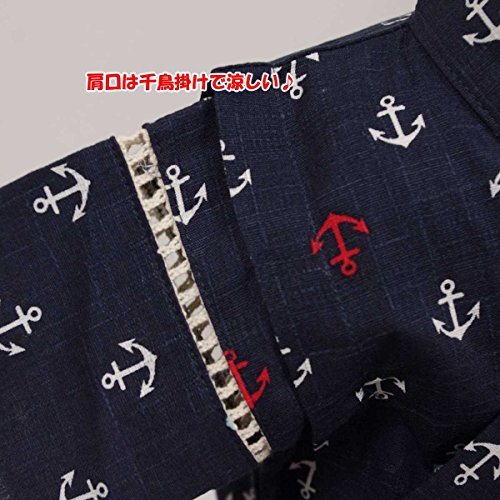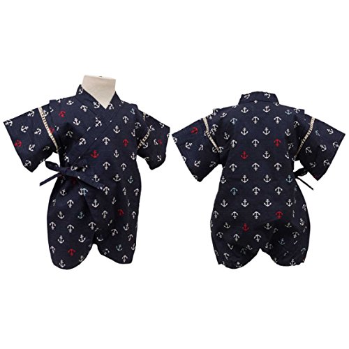 ボーイズ|ベビー|浴衣|甚平[くろわっさんす べべ]ベビー甚平|ロンパース甚平|いかり柄((日本製生地)綿100%|新生児|男の子|男児用 70cm ネイビー