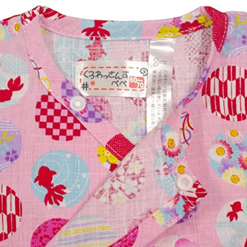 ガールズベビー浴衣|甚平[くろわっさんす べべ]ベビー甚平|ロンパース甚平|うさぎ|和柄((日本製生地)綿100%|新生児|女の子|女児用 60-70 ピンク
