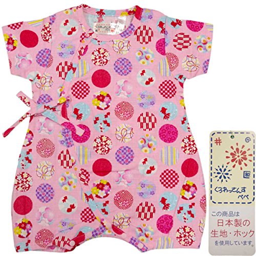 カラー : ピンク / ガールズ・まり柄・和柄甚平ロンパースタイプ(日本製生地使用、中国縫製) / ・ 新生児のお肌に優しい綿100%の日本製生地使用 / ・ まり柄・和柄のロンパースタイプの甚平 / ・ 内掛け、外掛け紐でカンタン着用 / ・ 股下は、スナップボタン留め・着脱やオムツ替えをしやすい / ・ お祭りや花火大会だけではなく、普段着やパジャマとしても大活躍! / 綿 100%(日本製生地)