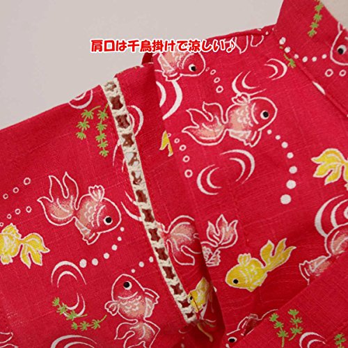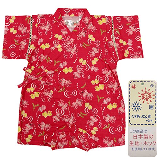 カラー : レッド / ガールズベビー・金魚柄・甚平ロンパースタイプ(日本製生地使用、中国縫製) / ・ 赤ちゃんのお肌に優しい綿100%の日本製生地使用 / ・ きんぎょ柄のロンパースタイプの甚平 / ・ 肩口は千鳥掛けで涼しい / ・ 上着は内掛け、外掛け紐でカンタン着用 / ・ 股下はスナップボタン留め・着脱やオムツ替えが簡単! / ・ お祭りや花火大会だけではなく、普段着やパジャマとしても大活躍! / 綿 100%(日本製生地)