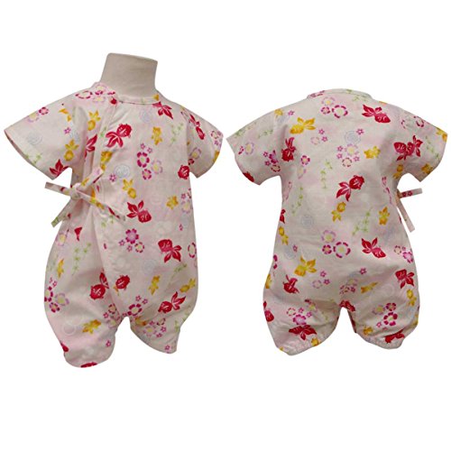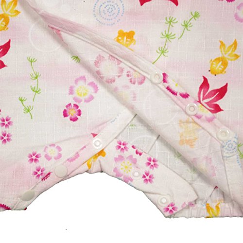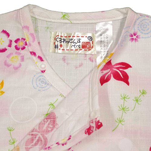 ガールズベビー浴衣|甚平[くろわっさんす べべ]ベビー甚平|ロンパース甚平|桜柄|和柄((日本製生地|)綿100%|新生児|女の子|女児用 50-60 ホワイト