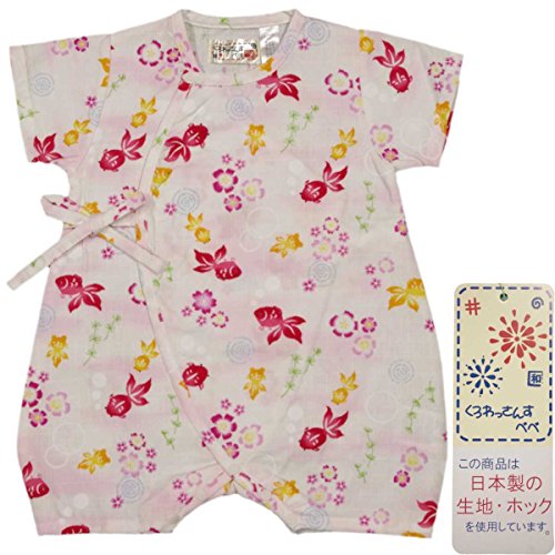 ガールズベビー浴衣|甚平[くろわっさんす べべ]ベビー甚平|ロンパース甚平|金魚|桜|和柄((日本製生地)綿100%|新生児|女の子|女児 50-60 ホワイト