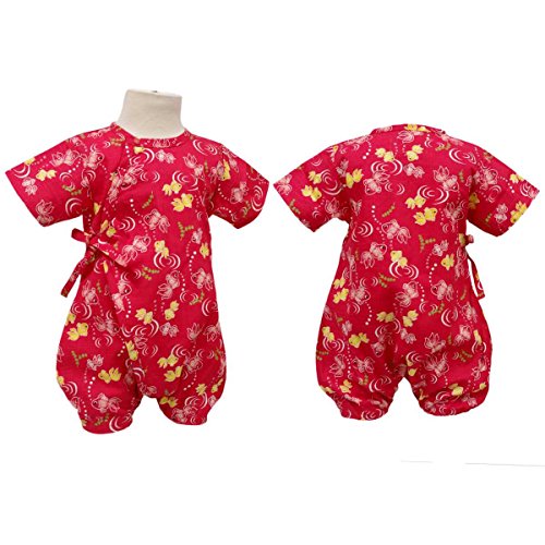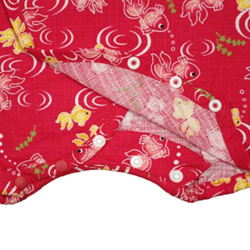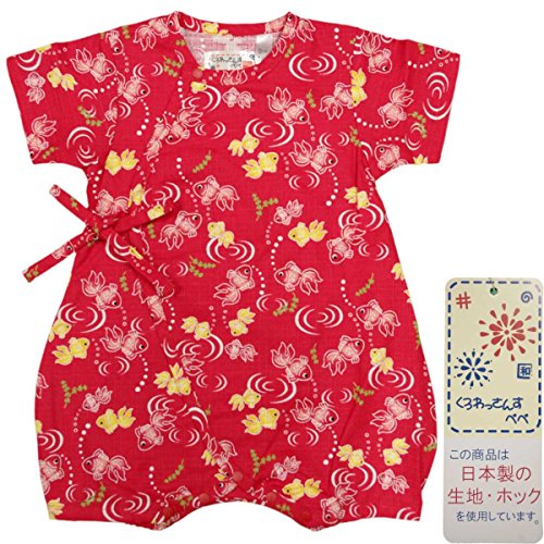 カラー : レッド / ガールズ・金魚柄・和柄甚平ロンパースタイプ(日本製生地使用、中国縫製) / ・ 新生児のお肌に優しい綿100%の日本製生地使用 / ・ 金魚柄・和柄のロンパースタイプの甚平 / ・ 内掛け、外掛け紐でカンタン着用 / ・ 股下は、スナップボタン留め・着脱やオムツ替えをしやすい / ・ お祭りや花火大会だけではなく、普段着やパジャマとしても大活躍! / 綿 100%(日本製生地)
