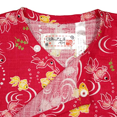 ガールズベビー浴衣|甚平[くろわっさんす べべ]ベビー甚平|ロンパース甚平|金魚柄|和柄((日本製生地)綿100%|新生児|女の子|女児用 50-60 レッド