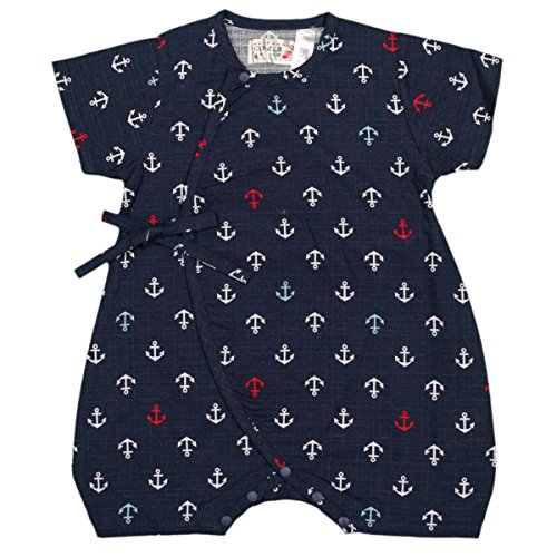 カラー : ネイビー / 男の子・ベビー甚平・ロンパースタイプ・マリン・いかり柄(日本製生地使用、中国縫製) / ・ 新生児のお肌に優しい綿100%の日本製生地・ホック使用 / ・ マリン柄・いかり柄のロンパースタイプの甚平 / ・ 内掛け、外掛け紐でカンタン着用 / ・ 股下は、スナップボタン留め・着脱やオムツ替えをしやすい / ・ お祭りや花火大会だけではなく、普段着やパジャマとしても大活躍! / 綿 100%(日本製生地)