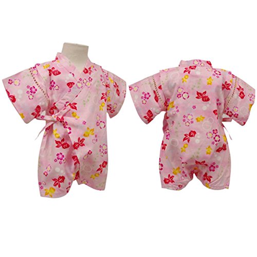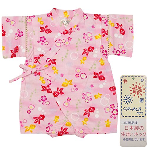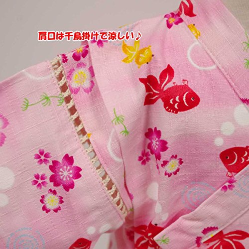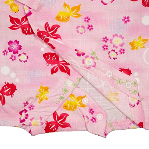 ガールズベビー浴衣|甚平[ベビー甚平|ロンパース甚平|金魚柄|和柄((日本製生地|ホック使用)綿100%|新生児|]女の子|女児用 70cm ピンク