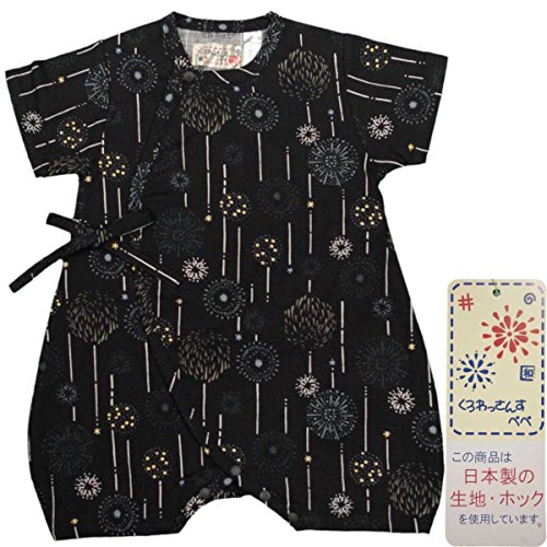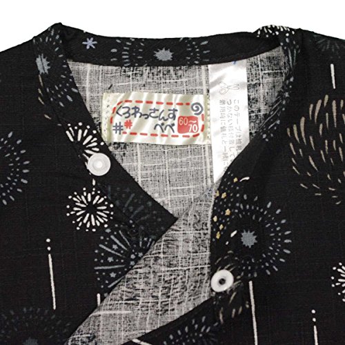 ボーイズベビー浴衣|甚平[くろわっさんす べべ]ベビー甚平|ロンパース甚平|花火柄|和柄((日本製生地)綿100%|新生児|男の子|男児用 60-70 ブラック
