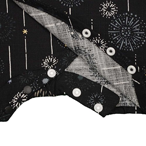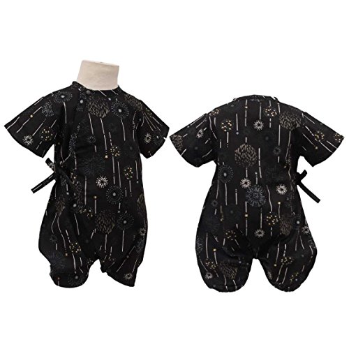 カラー : ブラック / 男の子・ベビー甚平・ロンパースタイプ・花火・和柄(日本製生地使用、中国縫製) / ・ 新生児のお肌に優しい綿100%の日本製生地・ホック使用 / ・ 花火柄・和柄のロンパースタイプの甚平 / ・ 内掛け、外掛け紐でカンタン着用 / ・ 股下は、スナップボタン留め・着脱やオムツ替えをしやすい / ・ お祭りや花火大会だけではなく、普段着やパジャマとしても大活躍! / 綿 100%(日本製生地)