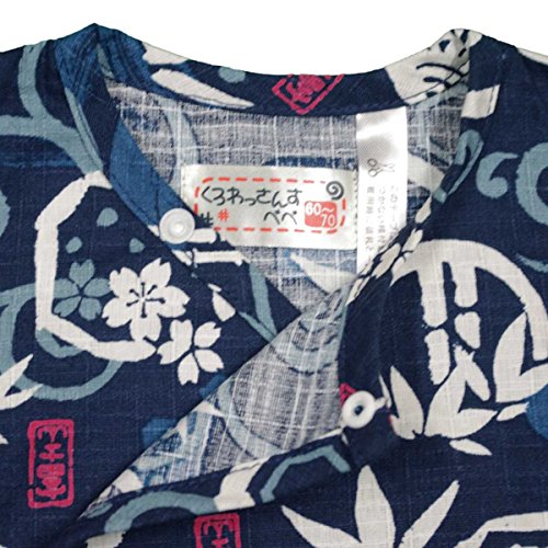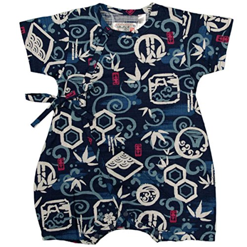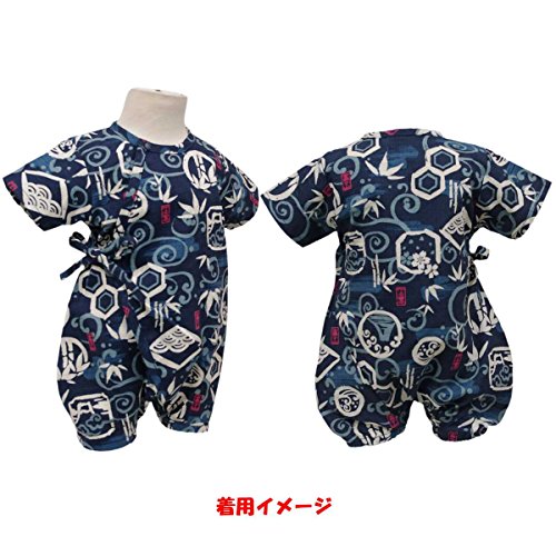 ボーイズ|ベビー|浴衣|甚平[くろわっさんす べべ]ベビー甚平|ロンパース甚平|和柄((日本製生地|コットン|綿100%|新生児|男の子|男児 50-60 ネイビー