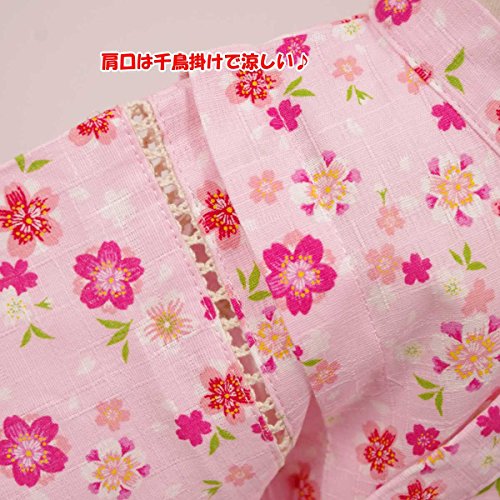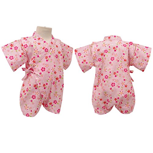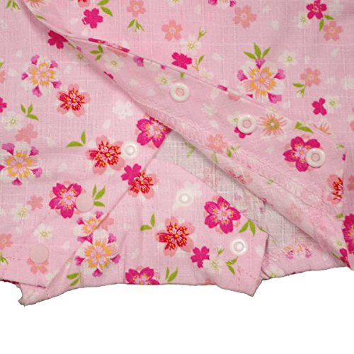 カラー : ピンク / ガールズベビーさくら柄・甚平ロンパースタイプ(日本製生地使用、中国縫製) / ・ 赤ちゃんのお肌に優しい綿100%の日本製生地使用 / ・ さくら・桜柄のロンパースタイプの甚平 / ・ 肩口は千鳥掛けで涼しい / ・ 上着は内掛け、外掛け紐でカンタン着用 / ・ 股下はスナップボタン留めで、着脱やオムツ替えが簡単! / ・ お祭りや花火大会だけではなく、普段着やパジャマとしても大活躍! / 綿 100%(日本製生地)