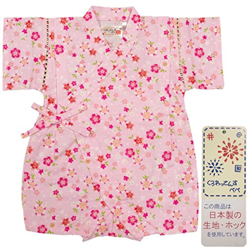 ガールズベビー浴衣|甚平[くろわっさんす べべ]ベビー甚平|ロンパース甚平|桜柄|和柄((日本製生地)綿100%|新生児|女の子|女児用 70cm ピンク
