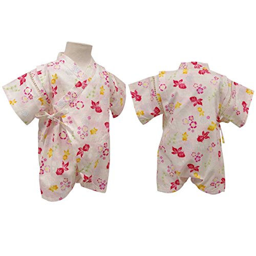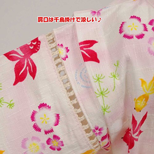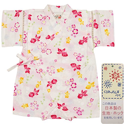 ガールズベビー浴衣|甚平[ベビー甚平|ロンパース甚平|金魚柄|和柄((日本製生地|ホック使用)綿100%|新生児|]女の子|女児用 70cm ホワイト