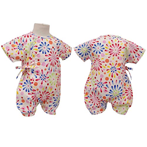 カラー : ホワイト / ガールズベビー・花火柄・和柄甚平ロンパースタイプ(日本製生地使用、中国縫製) / ・ 新生児のお肌に優しい綿100%の日本製生地使用 / ・ 花火柄のロンパースタイプの甚平 / ・ 内掛け、外掛け紐でカンタン着用 / ・ 股下は、スナップボタン留め・着脱やオムツ替えをしやすい / ・ お祭りや花火大会だけではなく、普段着やパジャマとしても大活躍! / 綿 100%(日本製生地)