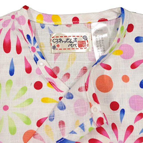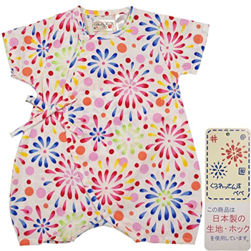 ガールズベビー浴衣|甚平[くろわっさんす べべ]ベビー甚平|ロンパース甚平|花火柄|和柄((日本製生地)綿100%|新生児|女の子|女児用 50-60 ホワイト
