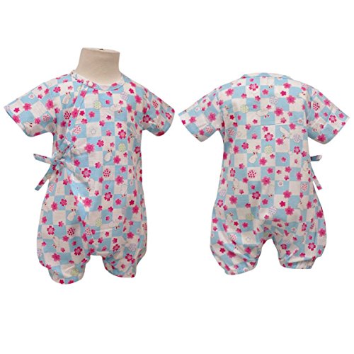 カラー : サックス / ガールズ・うさぎ格子柄・和柄甚平ロンパースタイプ(日本製生地使用、中国縫製) / ・ 新生児のお肌に優しい綿100%の日本製生地使用 / ・ うさぎ柄格子・和柄のロンパースタイプの甚平 / ・ 内掛け、外掛け紐でカンタン着用 / ・ 股下は、スナップボタン留め・着脱やオムツ替えをしやすい / ・ お祭りや花火大会だけではなく、普段着やパジャマとしても大活躍! / 綿 100%(日本製生地)