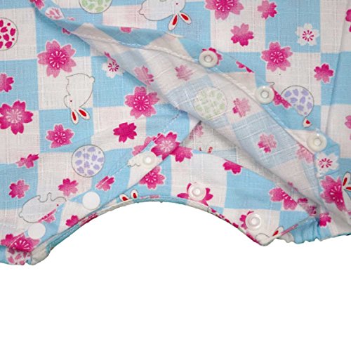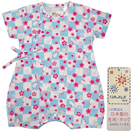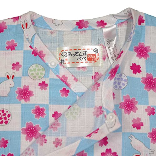 ガールズベビー浴衣|甚平[くろわっさんす べべ]ベビー甚平|ロンパース甚平|うさぎ|和柄((日本製生地)綿100%|新生児|女の子|女児用 50-60 サックス