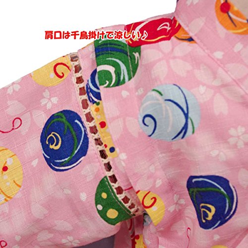 ガールズベビー浴衣|甚平[くろわっさんす べべ]ベビー甚平|上下セット|水風船柄和柄((日本製生地)綿100%|女の子|女児用 90cm ピンク