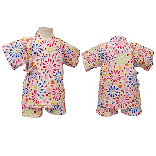 カラー : ホワイト / ガールズベビー花火柄・和柄甚平上下セット(日本製生地使用、中国縫製) / ・ 日本製生地使用 / ・ 花火柄・和柄の上下セパレートタイプの甚平 / ・ 肩口は千鳥掛けで涼しい / ・ 上着は内掛け、外掛け紐でカンタン着用 / ・ パンツはウェストゴム入り / ・ お祭りや花火大会だけではなく、普段着やパジャマとしても大活躍! / 綿 100%(日本製生地)