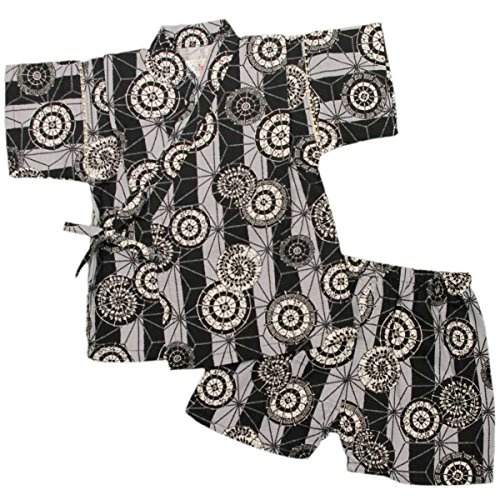 カラー : ブラック / ボーイズベビー番傘・和柄甚平上下セット(日本製生地使用、中国縫製) / ・ 日本製生地使用 / ・ 番傘柄の上下セパレートタイプの甚平 / ・ 肩口は千鳥掛けで涼しい / ・ 上着は内掛け、外掛け紐でカンタン着用 / ・ パンツはウェストゴム入り / ・ お祭りや花火大会だけではなく、普段着やパジャマとしても大活躍! / 綿 100%(日本製生地)