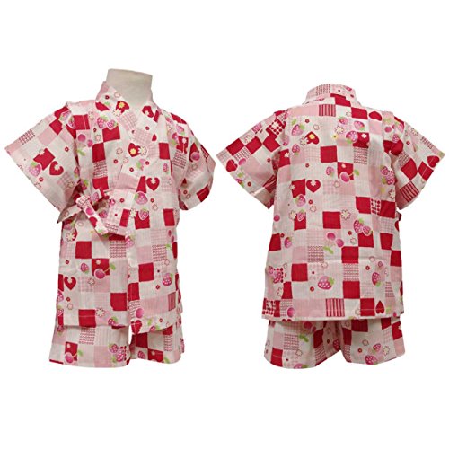 カラー : ピンク / ガールズベビーいちご・さくらんぼ・格子柄甚平上下セット / ・ フルーツ格子柄の甚平上下セット / ・ 上着は内掛けと外掛けヒモで簡単着用 / ・ ウェスト部分はゴム入り / ・ お肌に優しい、綿100% / ・ お祭りや花火大会はもちろん、部屋着としても大活躍! / 綿 100%
