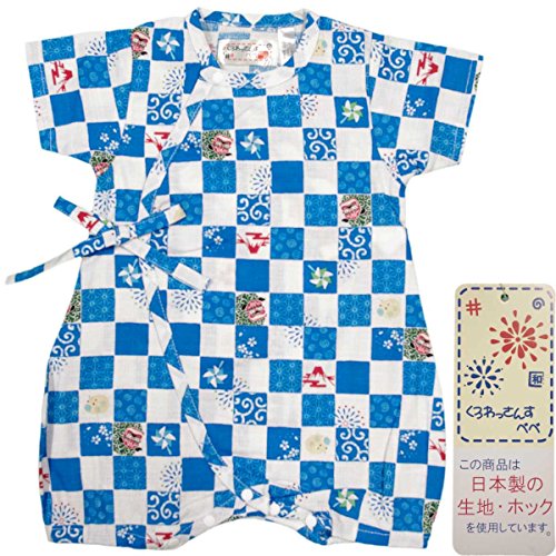 ボーイズ|ベビー|浴衣|甚平[くろわっさんす べべ]ベビー甚平|ロンパース甚平|ししまい柄((日本製生地)綿100%|新生児|男の子|男児用 50-60 ブルー