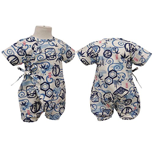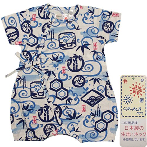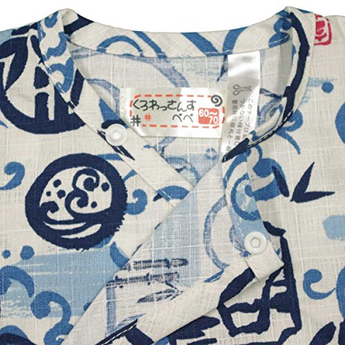 ボーイズベビー浴衣|甚平[くろわっさんす べべ]ベビー甚平|ロンパース甚平|和柄((日本製生地|コットン|綿100%|新生児|男の子|男児 60-70 ホワイト