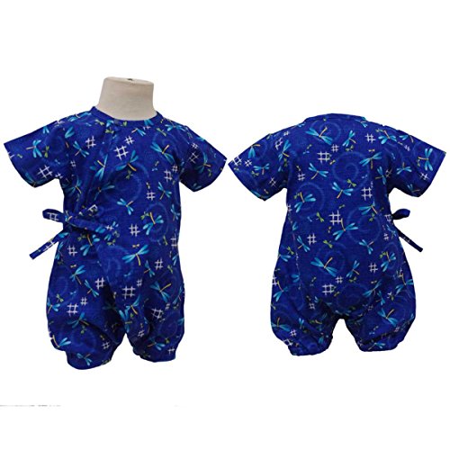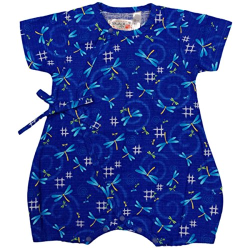 カラー : ブルー / 男の子・ベビー甚平・ロンパースタイプ・とんぼ柄(日本製生地使用、中国縫製) / ・ 新生児のお肌に優しい綿100%の日本製生地・ホック使用 / ・ 和柄・とんぼ柄のロンパースタイプの甚平 / ・ 内掛け、外掛け紐でカンタン着用 / ・ 股下は、スナップボタン留め・着脱やオムツ替えをしやすい / ・ お祭りや花火大会だけではなく、普段着やパジャマとしても大活躍! / 綿 100%(日本製生地)