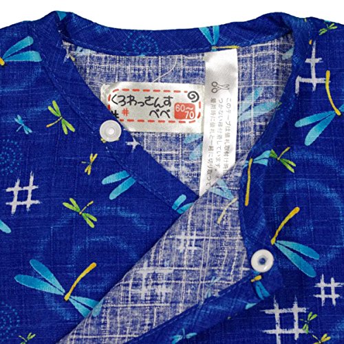 ボーイズ|ベビー|浴衣|甚平[くろわっさんす べべ]ベビー甚平|ロンパース甚平|とんぼ|和柄((日本製生地)綿100%|新生児|男の子|男児用 60-70 ブルー