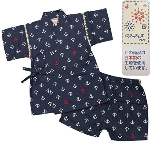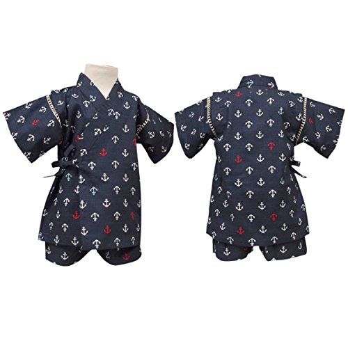 ボーイズ|ベビー|浴衣|甚平[くろわっさんす べべ]ベビー甚平|甚平上下セット|マリン|いかり柄|日本製生地|男の子|男児|ボーイズ 80cm ネイビー