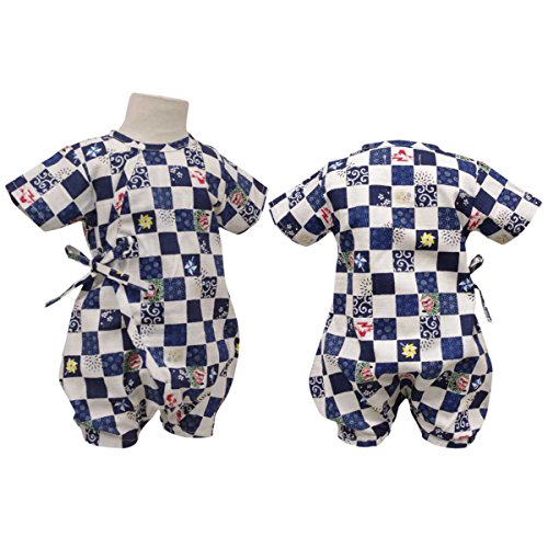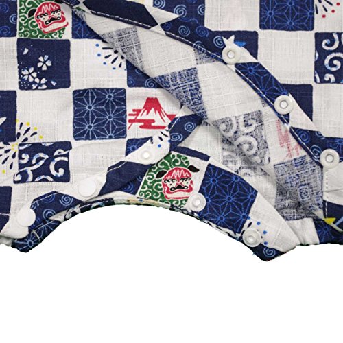カラー : ネイビー / 男の子・ベビー甚平・ロンパースタイプ・ししまい柄(日本製生地使用、中国縫製) / ・ 新生児のお肌に優しい綿100%の日本製生地・ホック使用 / ・ 和柄・ししまい柄のロンパースタイプの甚平 / ・ 内掛け、外掛け紐でカンタン着用 / ・ 股下は、スナップボタン留め・着脱やオムツ替えをしやすい / ・ お祭りや花火大会だけではなく、普段着やパジャマとしても大活躍! / 綿 100%(日本製生地)