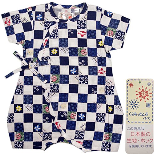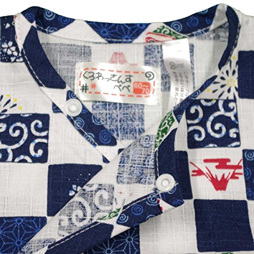 ボーイズ|ベビー|浴衣|甚平[くろわっさんす べべ]ベビー甚平|ロンパース甚平|ししまい柄((日本製生地)綿100%|新生児|男の子|男児用 50-60 ネイビー