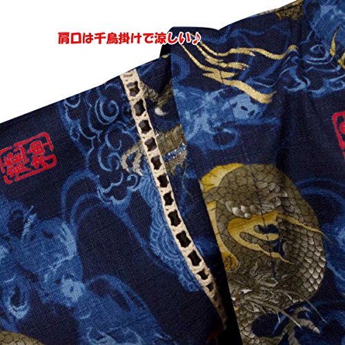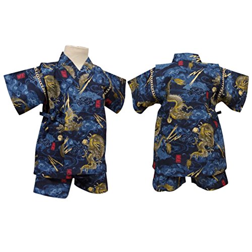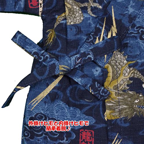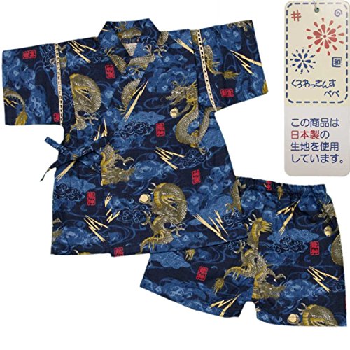 カラー : ブルー / ボーイズベビー龍神・龍柄・和柄甚平上下セット(日本製生地使用、中国縫製) / ・ 日本製生地使用 / ・ 龍神柄の上下セパレートタイプの甚平 / ・ 肩口は千鳥掛けで涼しい / ・ 上着は内掛け、外掛け紐でカンタン着用 / ・ パンツはウェストゴム入り / ・ お祭りや花火大会だけではなく、普段着やパジャマとしても大活躍! / 綿 100%(日本製生地)