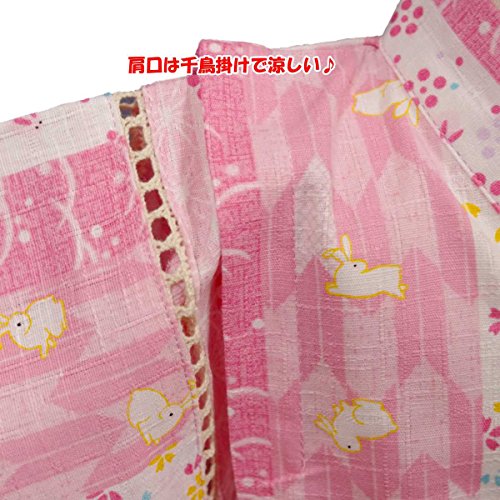 ガールズベビー浴衣|甚平[くろわっさんす べべ]ベビー甚平|上下セット|うさぎ柄|和柄((日本製生地)綿100%|女の子|女児用 80cm ピンク
