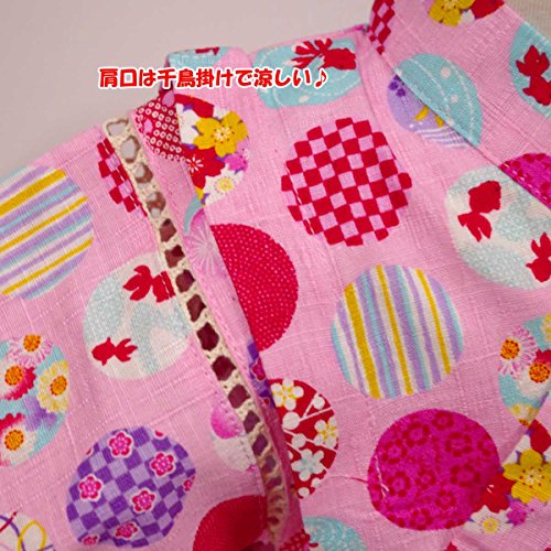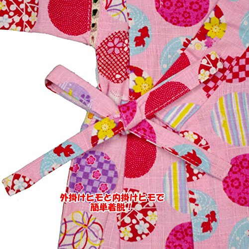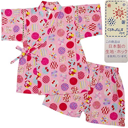 ガールズベビー浴衣|甚平[くろわっさんす べべ]ベビー甚平|上下セット|まり柄|和柄(日本製生地)綿100%|女の子|女児用 90cm ピンク