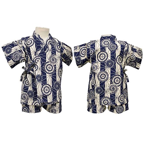 カラー : ネイビー / ボーイズベビー番傘・和柄甚平上下セット(日本製生地使用、中国縫製) / ・ 日本製生地使用 / ・ 番傘柄の上下セパレートタイプの甚平 / ・ 肩口は千鳥掛けで涼しい / ・ 上着は内掛け、外掛け紐でカンタン着用 / ・ パンツはウェストゴム入り / ・ お祭りや花火大会だけではなく、普段着やパジャマとしても大活躍! / 綿 100%(日本製生地)