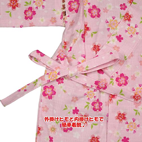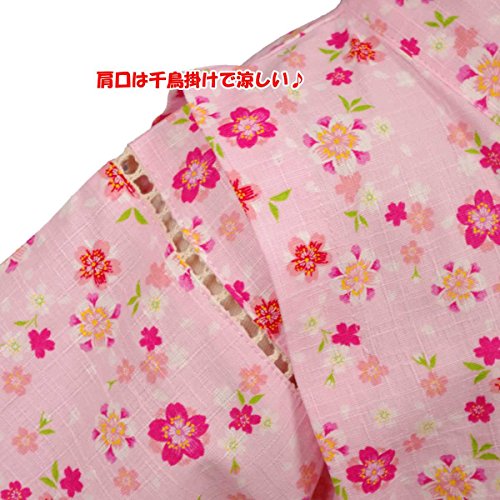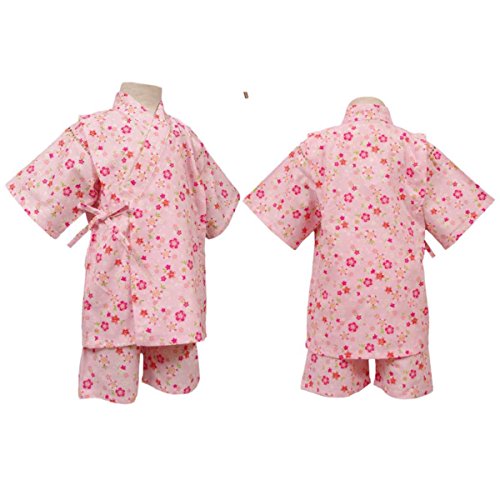 カラー : ピンク / ガールズキッズ桜・さくら柄甚平上下セット(日本製生地使用、中国縫製) / ・ 日本製の綿100%生地使用 / ・ さくら柄の甚平上下セット / ・ 肩口は千鳥掛けで涼しい♪ / ・ 上着は内掛けと外掛けヒモで簡単着用 / ・ お祭りや花火大会はもちろん、部屋着としても大活躍! / 綿 100%(日本製生地)