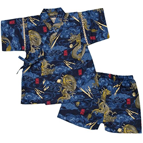 カラー : ブルー / ボーイズベビー龍神・龍柄・和柄甚平上下セット(日本製生地使用、中国縫製) / ・ 日本製生地使用 / ・ 龍神柄の上下セパレートタイプの甚平 / ・ 肩口は千鳥掛けで涼しい / ・ 上着は内掛け、外掛け紐でカンタン着用 / ・ パンツはウェストゴム入り / ・ お祭りや花火大会だけではなく、普段着やパジャマとしても大活躍! / 綿 100%(日本製生地)