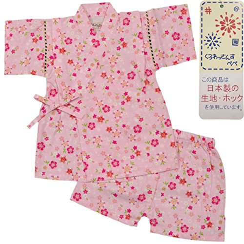 カラー : ピンク / ガールズベビー桜柄・和柄甚平上下セット(日本製生地使用、中国縫製) / ・ 日本製生地使用 / ・ 桜柄・和柄の上下セパレートタイプの甚平 / ・ 肩口は千鳥掛けで涼しい / ・ 上着は内掛け、外掛け紐でカンタン着用 / ・ パンツはウェストゴム入り / ・ お祭りや花火大会だけではなく、普段着やパジャマとしても大活躍! / 綿 100%(日本製生地)