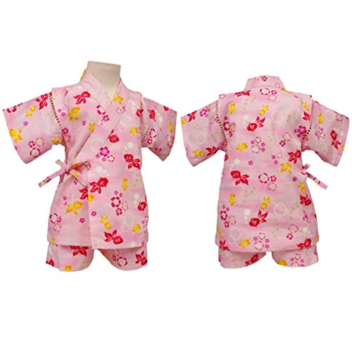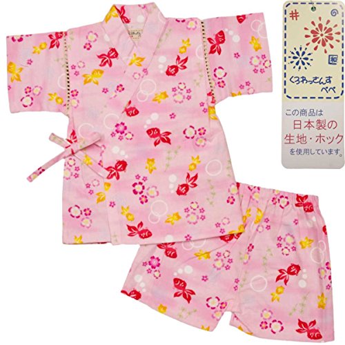 カラー : ピンク / ガールズベビー金魚柄・和柄甚平上下セット(日本製生地使用、中国縫製) / ・ 日本製生地使用 / ・ 金魚柄・和柄の上下セパレートタイプの甚平 / ・ 肩口は千鳥掛けで涼しい / ・ 上着は内掛け、外掛け紐でカンタン着用 / ・ パンツはウェストゴム入り / ・ お祭りや花火大会だけではなく、普段着やパジャマとしても大活躍! / 綿 100%(日本製生地)