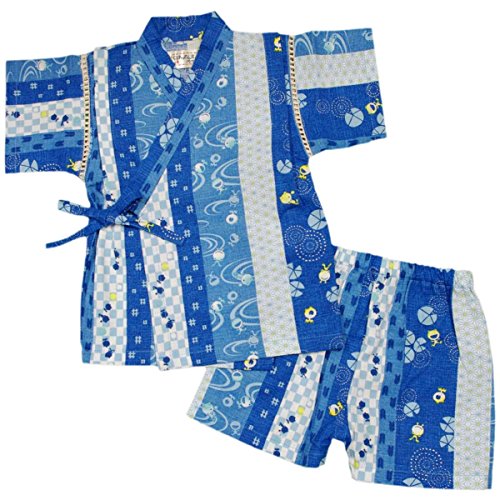 カラー : ブルー / ボーイズベビーかえる柄・和柄甚平上下セット(日本製生地使用、中国縫製) / ・ 日本製生地使用 / ・ かえる柄の上下セパレートタイプの甚平 / ・ 肩口は千鳥掛けで涼しい / ・ 上着は内掛け、外掛け紐でカンタン着用 / ・ パンツはウェストゴム入り / ・ お祭りや花火大会だけではなく、普段着やパジャマとしても大活躍! / 綿 100%(日本製生地)