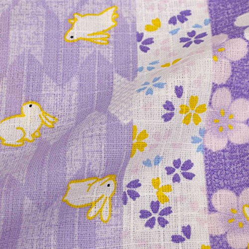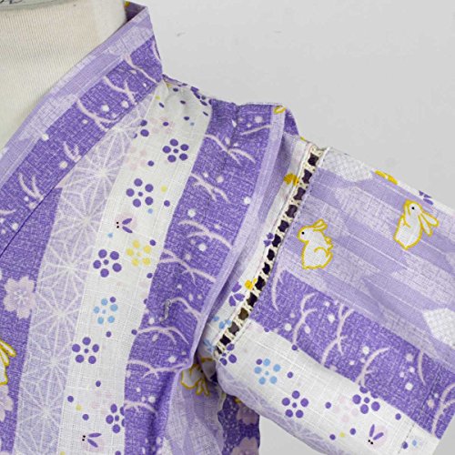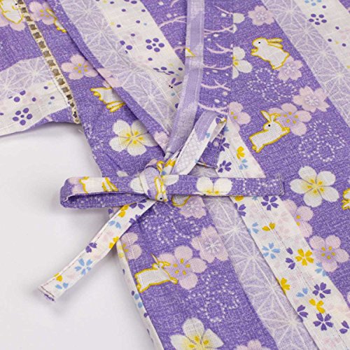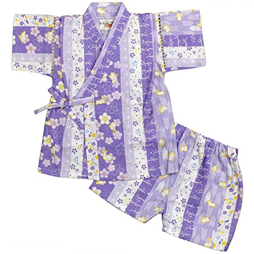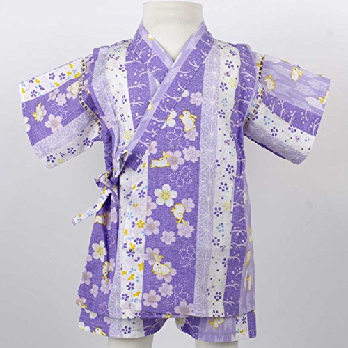 ガールズベビー浴衣|甚平[くろわっさんす べべ]ベビー甚平|上下セット|うさぎ 矢絣 桜柄|和柄(日本製生地) 綿100%|女の子|女児 90cm パープル