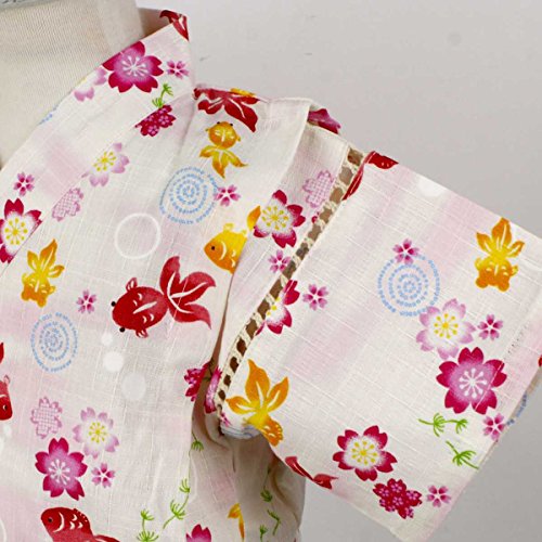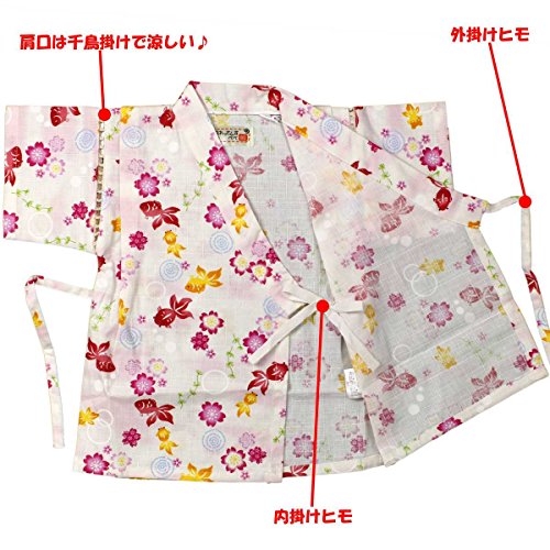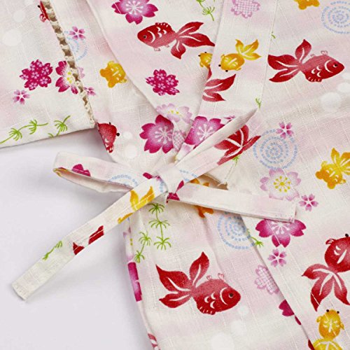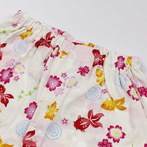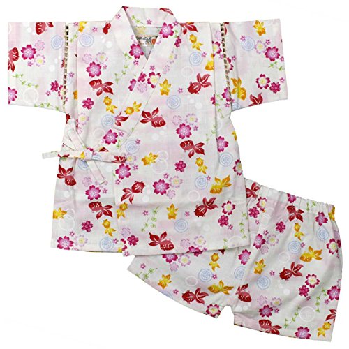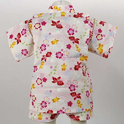 カラー : ホワイト / ガールズベビー桜と金魚柄・和柄甚平上下セット(日本製生地使用、中国縫製) / ・ 日本製生地使用 / ・ 桜と金魚柄の上下セパレートタイプの甚平 / ・ 肩口は千鳥掛けで涼しい / ・ 上着は内掛け、外掛け紐でカンタン着用 / ・ パンツはウェストゴム入り / ・ お祭りや花火大会だけではなく、普段着やパジャマとしても大活躍! / 綿 100%(日本製生地)
